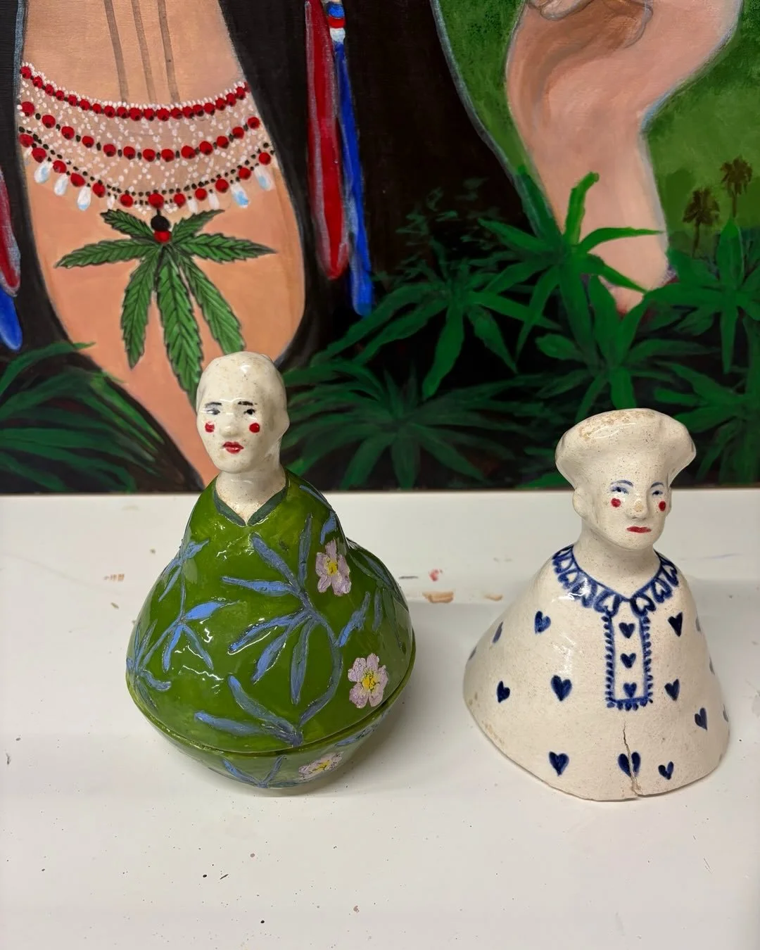 I am an interdisciplinary artist who uses multimedia painting and sculpture to communicate spirituality, identity, and resilience seen through a matriarchal lens. My work delves into the complexities of being first generation Dominican American woman. Living in two cultures, navigating questions of religion and race, questioning which practices should be passed on to future generations and which no longer serve us. This body of work is an homage to matriarchal strength and resilience. The unwavering gaze of the sculptures and the interwoven messages in the paintings tell the story of determination in the face of adversity.